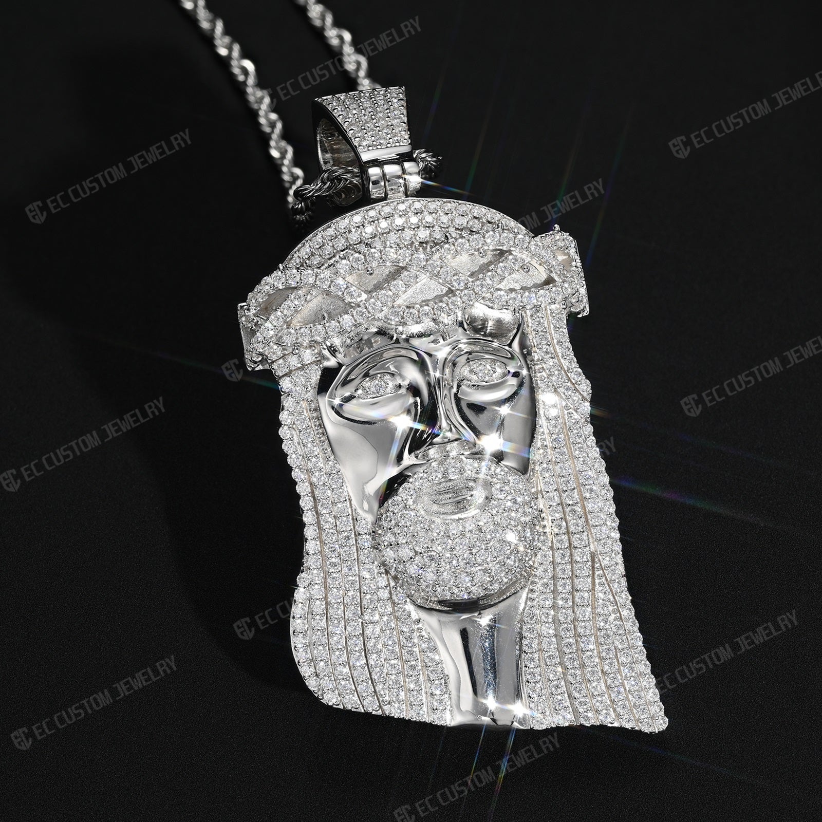 A symbol of success, faith, and protection, the Jesus Piece is the most iconic staple in hip-hop history, popularized by legends like Notorious B.I.G., Jay-Z, and Kanye West. This "buss down" pendant features the traditional likeness of Jesus Christ with a detailed crown of thorns, designed to deliver maximum light refraction and an elite "stage-ready" shine.