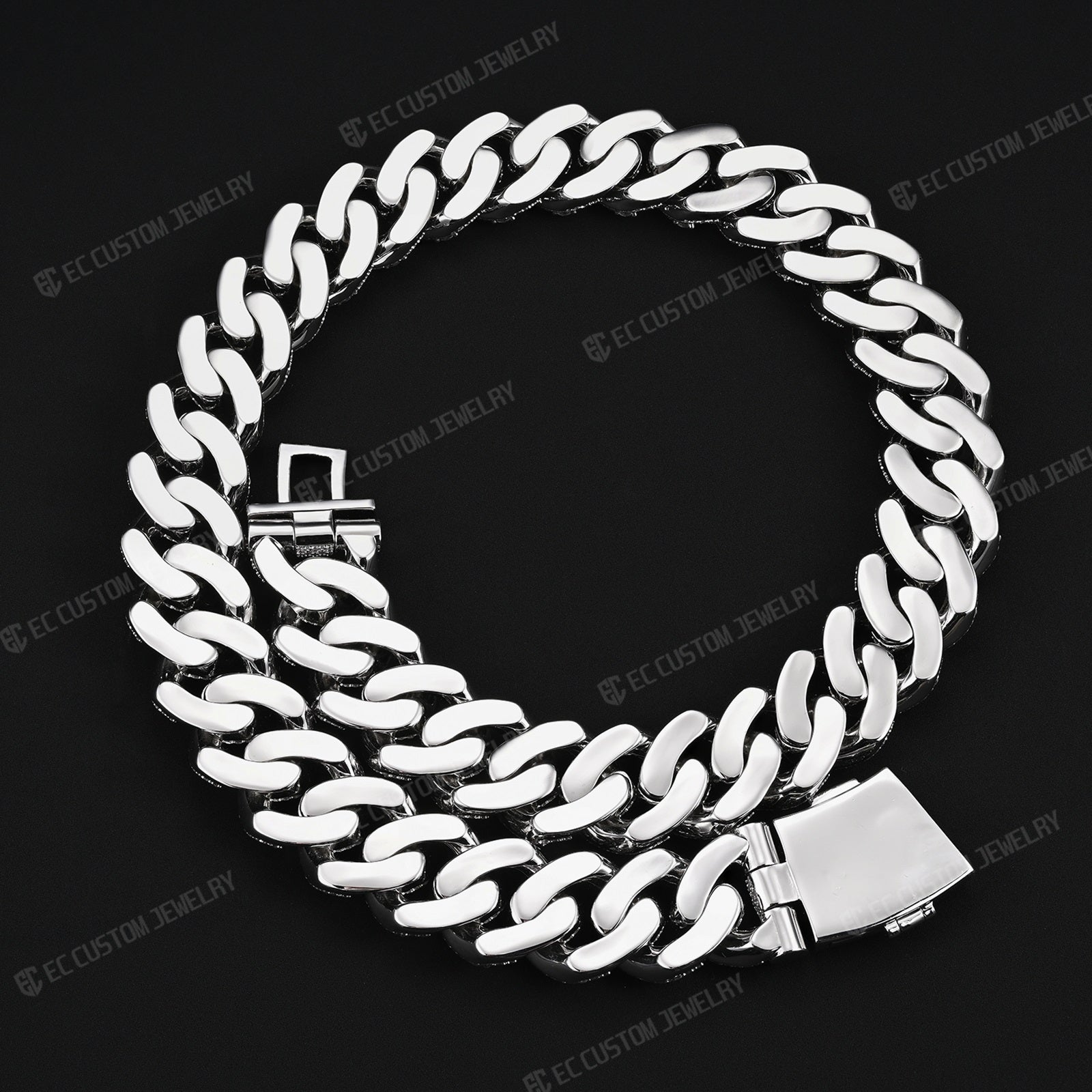 Massive 22MM Width: A heavy, wide-profile design that sits flat and dominates the neckline.